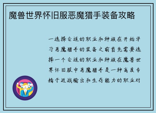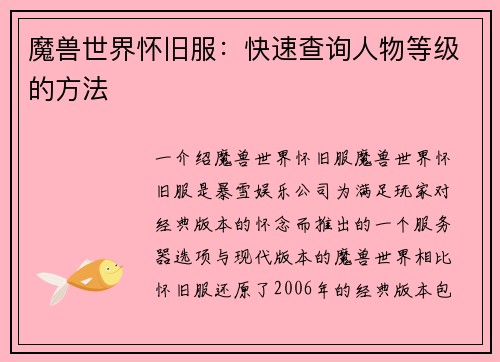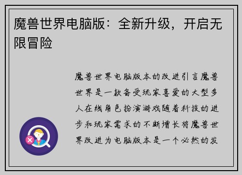 魔兽世界如何快速刷稀有装备等级任务 引言: 魔兽世界是一款备受玩家喜爱的大型多人在线角色扮演游戏,其中最令人激动的部分之一就是追求稀有装备。而快速刷取稀有装备等级任务是许多玩家的共同目标。本文将从多个方面详细阐述如何在魔兽世界中快速刷取稀有装备等级任务。 一、选择适合的任务区域 在魔兽世界中,不同的...