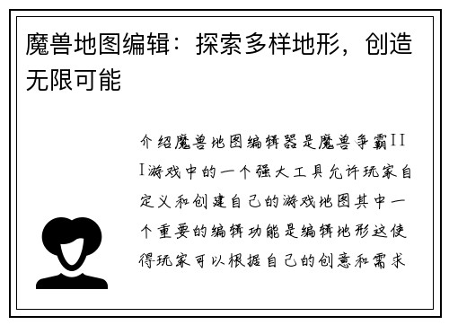 1. 魔兽争霸大地图图纸数据的概述 魔兽争霸是一款热门的即时战略游戏,拥有丰富的游戏地图供玩家选择。大地图图纸数据是指魔兽争霸地图中包含的各种信息和资源的数据。这些数据对于游戏的平衡性和玩家体验至关重要。本文将详细介绍魔兽争霸如何读取大地图图纸数据,以及相关的技术和工具。 2. 大地图图纸数据的结构...